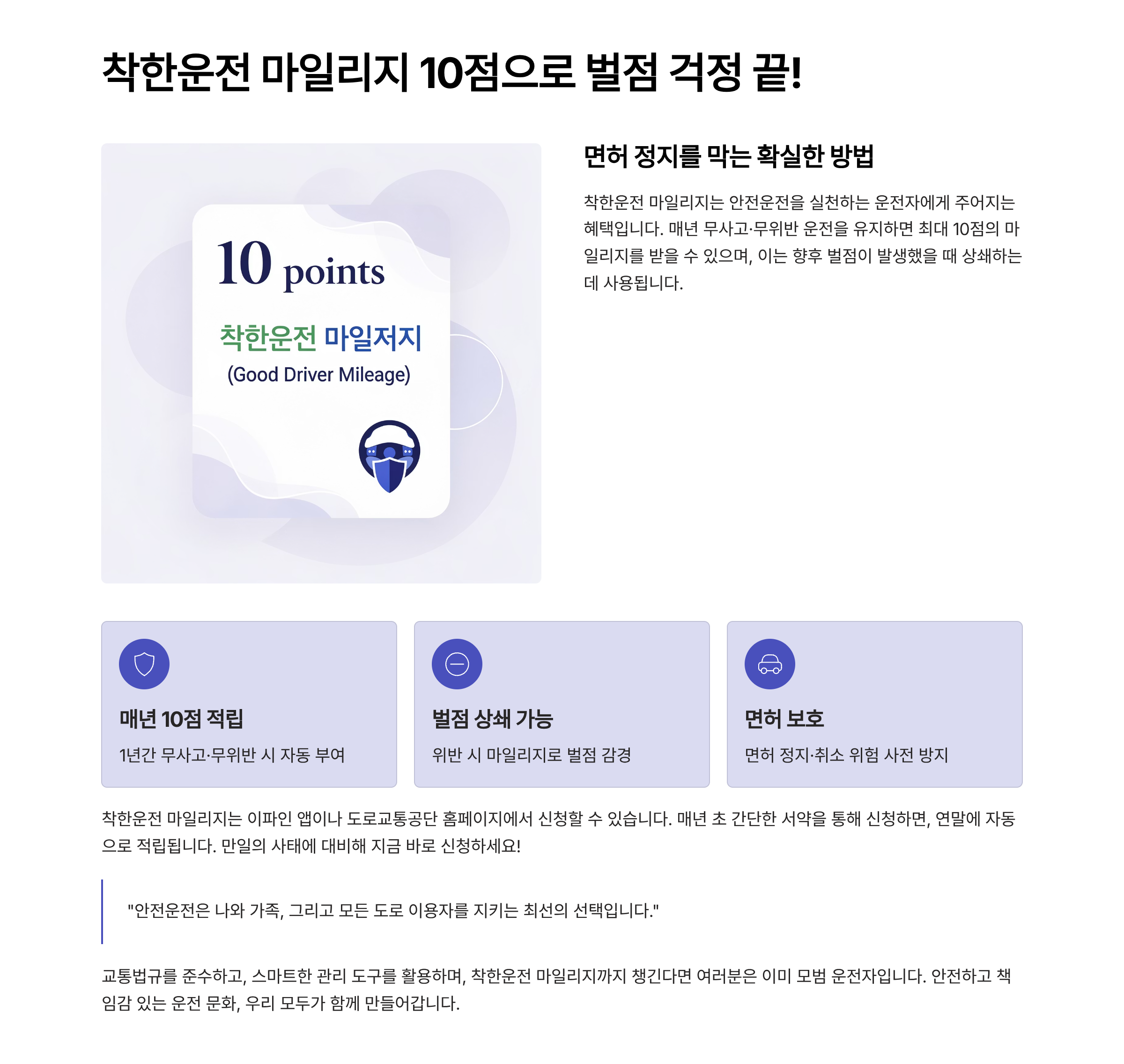 2. 착한운전 마일리지, 10점씩 모으세요