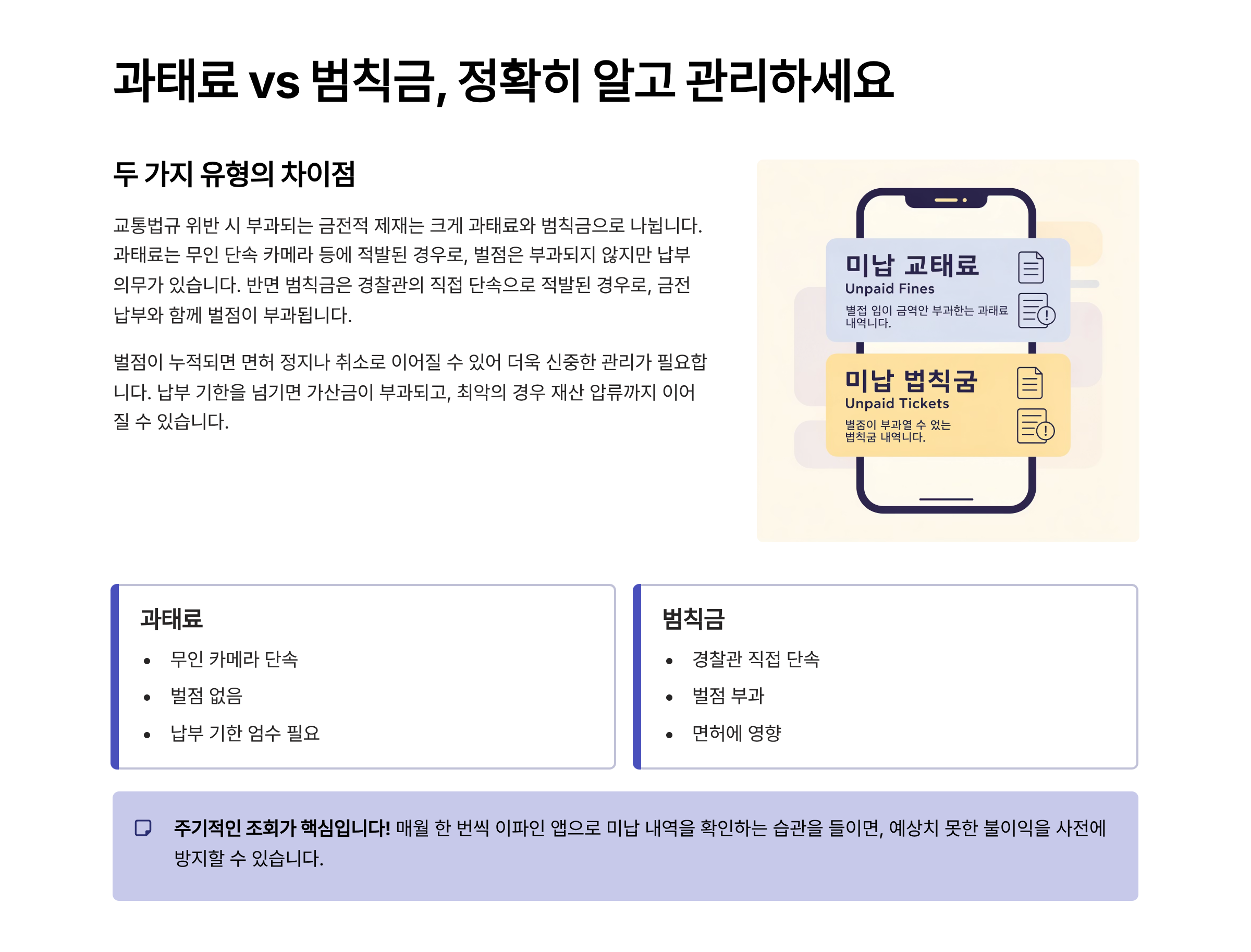 2️⃣ 미납 범칙금: 운전자 기준으로, 벌점이 부과됩니다.