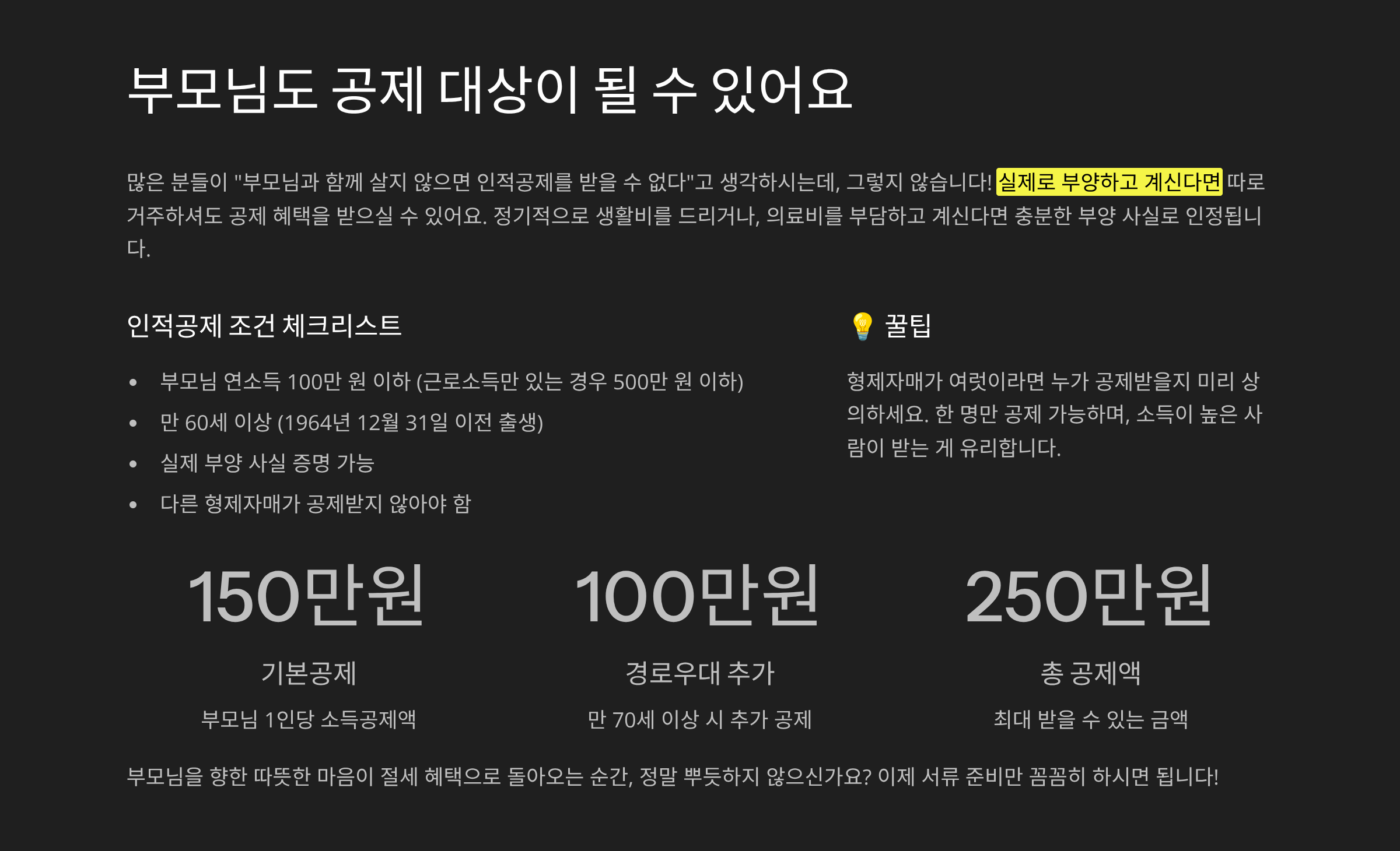 ✅ 형제들과 부모님 공제 중복 여부 확인했나?
