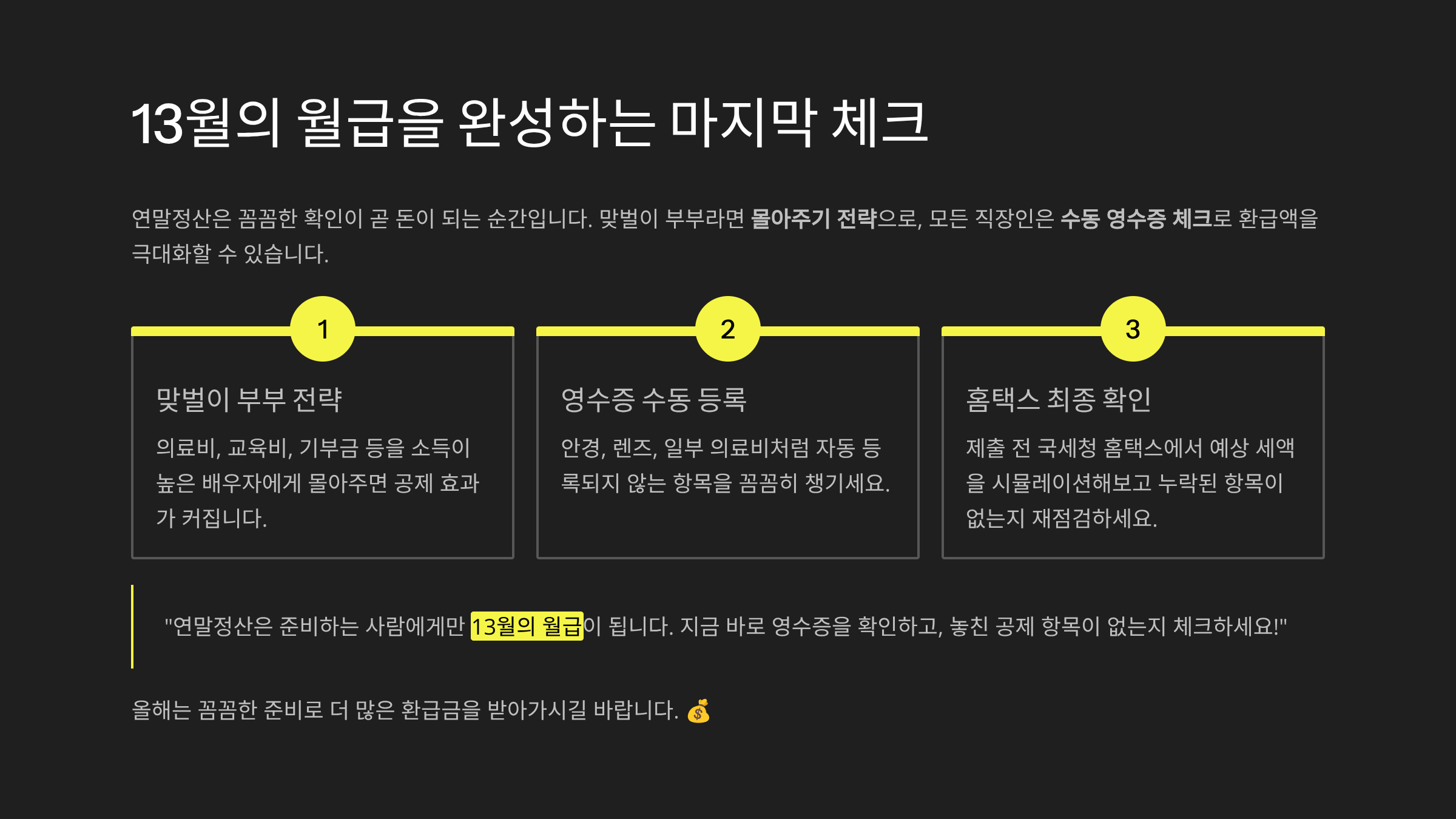 여러분의 올해 연말정산은 '13월의 월급'이 되길 바랄게요.