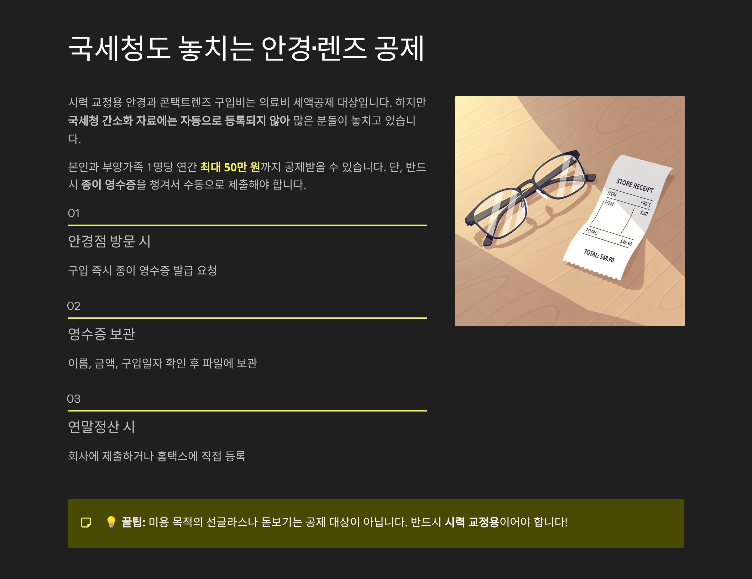 ✅ 시력 교정용 안경 및 콘택트렌즈 영수증
